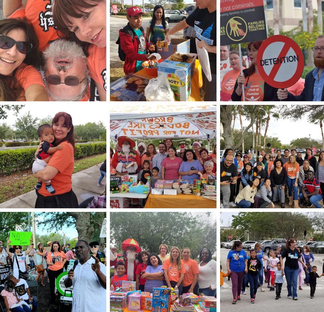 When Trump took office in 2016, life in South Florida changed fast. The cruelty wasn’t theoretical—it was happening right down the street. Half a mile from my office sat ICE Miramar, a facility that quickly became ground zero for family separation and quiet suffering. One Facebook post from a friend asking for help with water and snacks turned into a life-changing call to action. I showed up that first Wednesday, and I have never looked back.